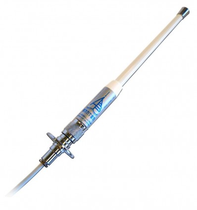 Technische Merkmale: Antennentyp VHF-Band Frequenz 156-162 MHz Länge 0,25 m Griff aus verchromtem Messing Kunststoffpeitsche Weiße Farbe Gewicht 0,86 Gewinn O Abschnitte 1 Deckflanschmontage 6,60 m RG 58 Kabel oder Stecker SWR kleiner als 1,1 Impedanz 50 Ohm Vertikale Polarisation Maximale Leistung 50 Blitzschutz Ja Kurzgeschlossen gegen Masse Ja
