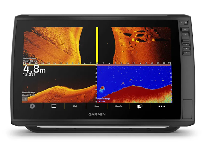 Einige Modelle sind mit einem GT56-Geber ausgestattet, der neben dem traditionellen Garmin CHIRP-Sonar auch UHD ClearVü- und SideVü-Scansonare bietet, um leichter erkennen zu können, was sich unter der Wasseroberfläche befindet.