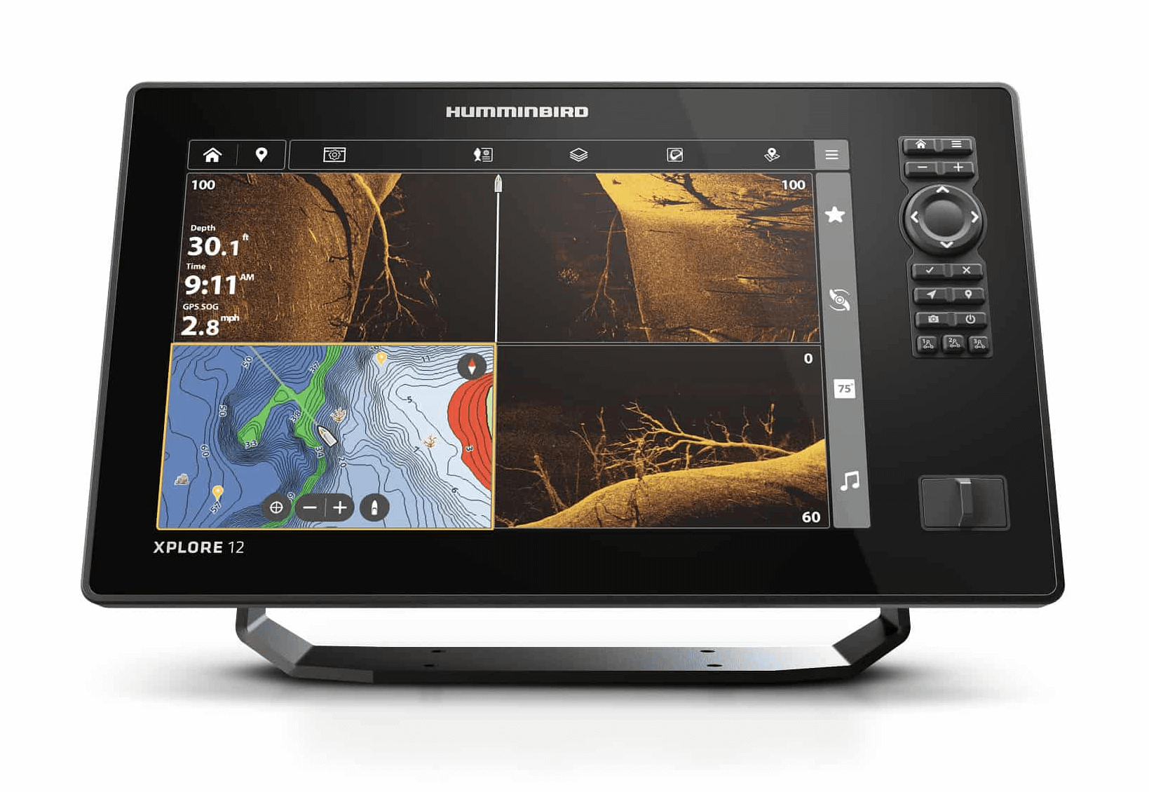 Das 1280 x 720 Ultra-HD-Display ermöglicht es dem Benutzer, Sonarbilder und Karten in unglaublicher Detailgenauigkeit zu betrachten.
