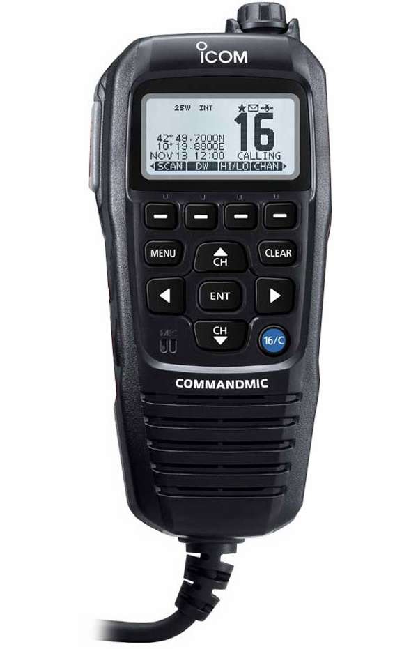 Das Commandmic verfügt über ein großes, helles Display, hintergrundbeleuchtete Funktionstasten und ist auf der Rückseite mit einer Notruftaste für DSC-Anrufe ausgestattet. Mit der Commandmic-Fernbedienung können Sie beliebige Vorgänge ausführen. Sie kann auch als Gegensprechanlage zur Kommunikation mit der Masterstation verwendet werden. Ergonomisches Design für einen sicheren und komfortablen Griff.