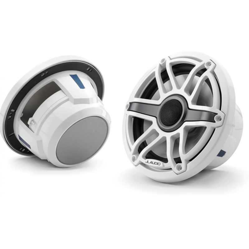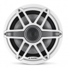 7,7-Zoll (196 mm) Marine-Koaxiallautsprecher mit Transflective™ LED-Beleuchtung, glänzend weißer Zierring, glänzend weißer Sportgrill