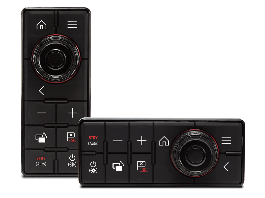 NEUES RMK-10 Fernbedienungs-Tastenfeld Das vollständig hintergrundbeleuchtete RMK-10-Tastenfeld verfügt über spezielle Tasten für Startbildschirm, Menü, Zoom, Fenstersteuerung, Wegpunktverwaltung, Ein-/Ausschalten/Helligkeit sowie die Steuerung des Evolution-Autopiloten.