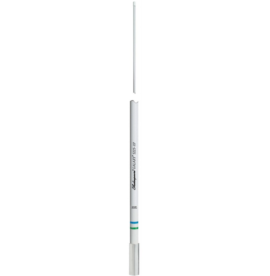 Für härteste Einsätze stattet Shakespeare seine weltbekannten Galaxy Marine-VHF-Antennen mit versilberten Elementen aus. Die neue 5225-XP ist eine Antenne mit maximaler Reichweite, gefertigt aus einem besonders robusten Shakespeare-Fiberglas-Radom. Sie ist so konstruiert, dass sie Windkräften und hohen Geschwindigkeiten standhält und sich ideal für die Montage auf Hardtops, T-Tops und Radarhalterungen eignet. Die Versilberung sorgt für eine verbesserte Leistung und extrem zuverlässige Kommunikation. Dank des legendären Galaxy®-Hochglanzfinishs ist die Antenne eine Bereicherung für jedes Boot.