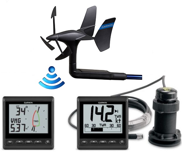GNX 20 Display, GNX Wind, drahtloser Windgeber und DST 810 Echolot/Log-Geber