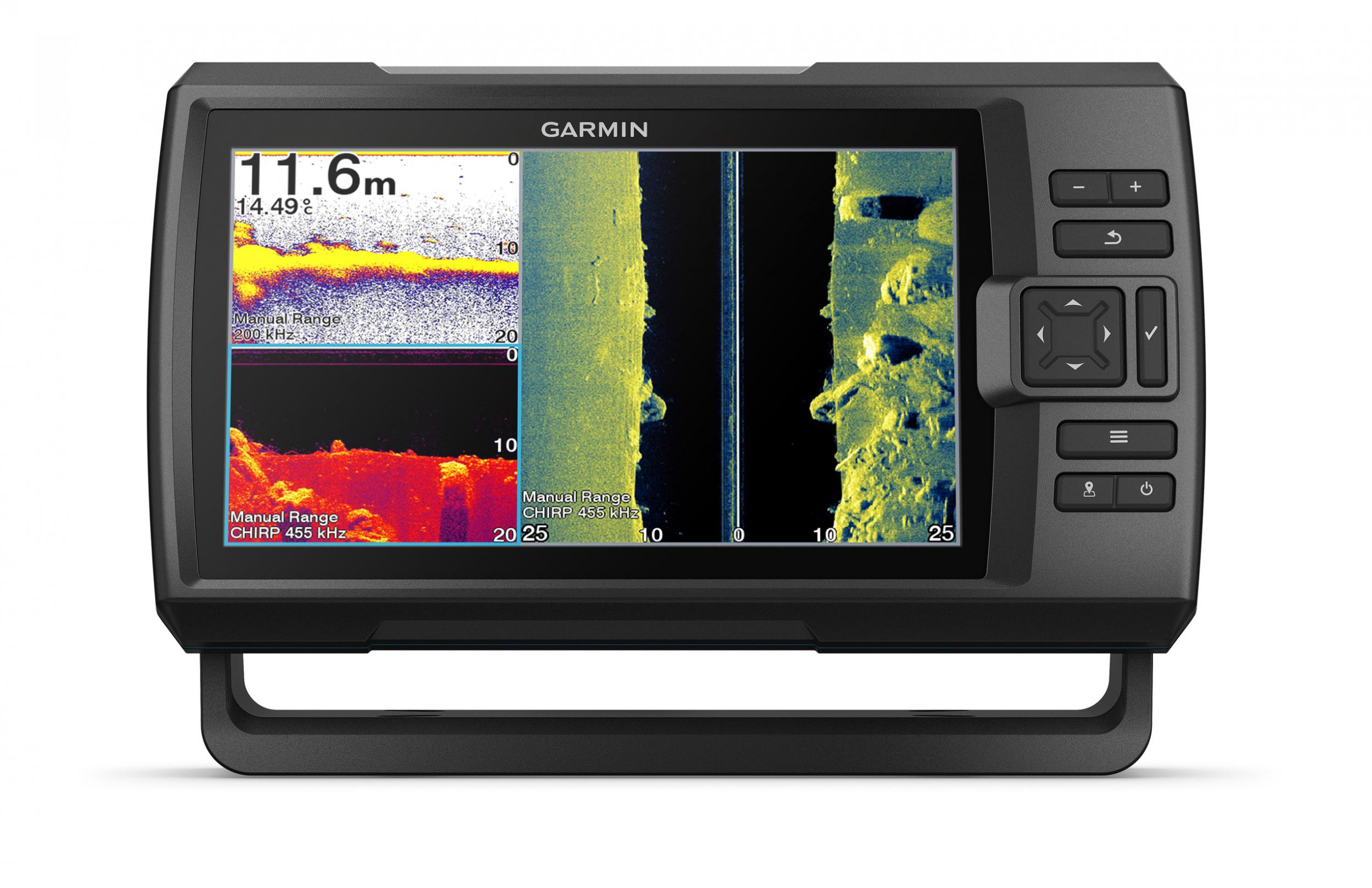 Mit dem mitgelieferten GT 52- Geber erhalten Sie das traditionelle Garmin CHIRP-Sonar, das CHIRP ClearVü-Scansonar zur Darstellung der Bodenstruktur und das CHIRP SideVü-Sonar für die seitliche Ansicht.
