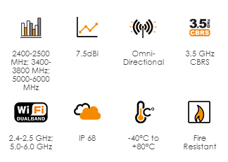 Die OMNI-496 ist eine Dualband-Rundstrahl-WLAN-Antenne von Poynting Antennas. Sie lässt sich an jeden WLAN-Zugangspunkt anschließen, egal ob Router oder 2-Wege-Router. Die Antenne überwindet Kanalüberlastung und bietet so optimale WLAN-Leistung und Flexibilität. Die OMNI-496 ist eine IP68-zertifizierte Marine-Version ihres Pendants OMNI-296 für den urbanen, industriellen und kommerziellen Einsatz. Sie arbeitet in den Frequenzbändern 2,4 GHz und 5 GHz und bietet dadurch eine hervorragende Spektrumsnutzung. Mit einer maximalen Verstärkung von 6 dBi im 2,4-GHz-Band und 7,5 dBi im 5-GHz-Band gewährleistet sie beste Leistung und zuverlässige Verbindungen. An ihrem Fuß befindet sich ein N-Buchsenstecker, an den ein Kabel des gewünschten Typs und der gewünschten Länge angeschlossen werden kann.