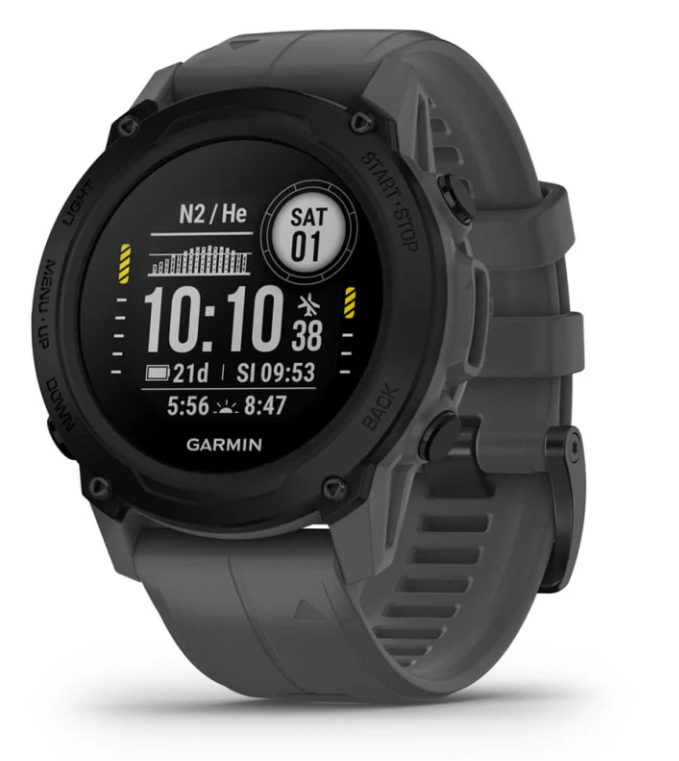 Battery life up to 25 hours in dive mode, 26 hours in GPS mode and 21 days in smartwatch mode.