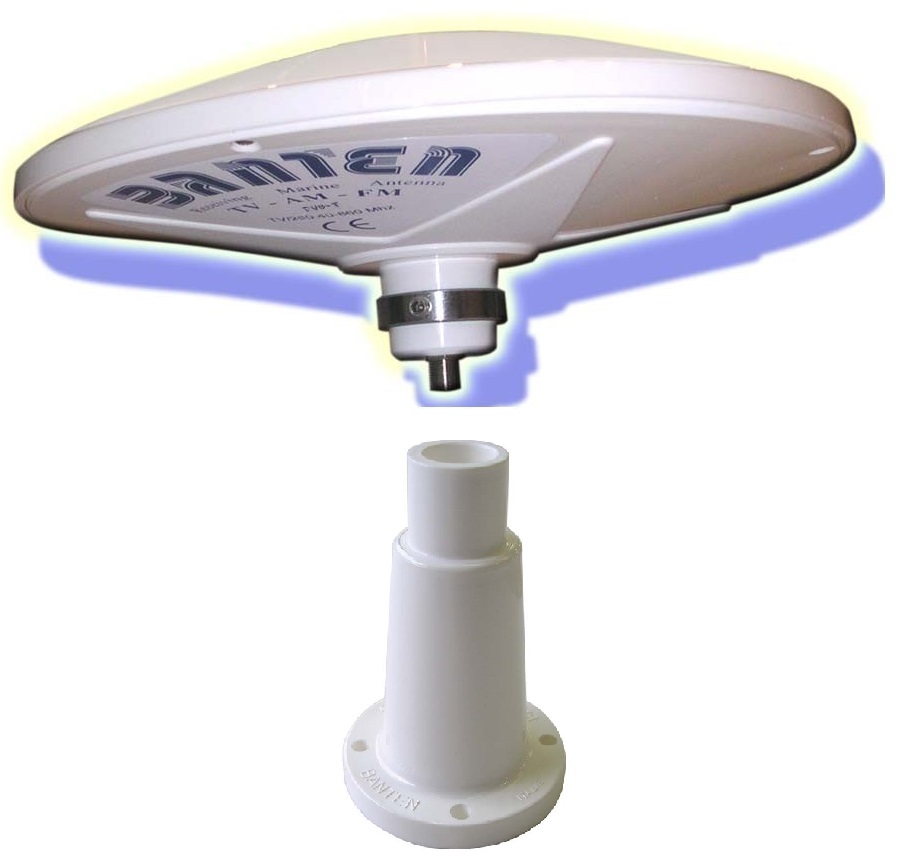 Antena TV de disco Bantena para instalación en barcos o campers con cable de 5m y base fija de nylon para su instalación.