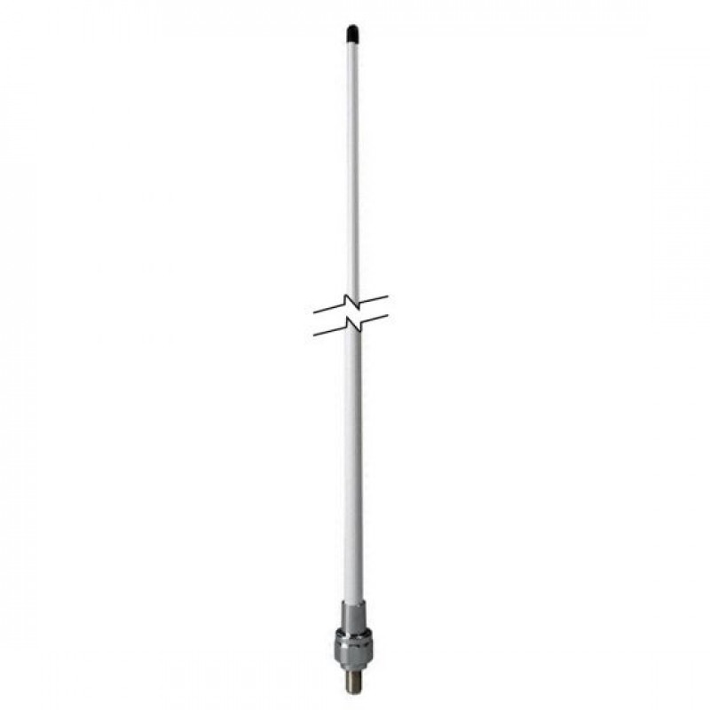 Antena VHF de fibra de vidrio blanca diseñada para operadores comerciales donde se requiere rendimiento y facilidad de instalación.