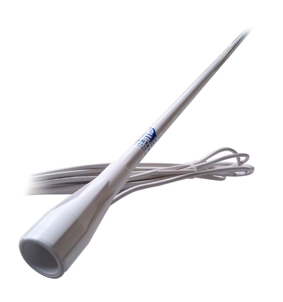 Antenne VHF en fibre de verre H 1,5 m gain 3 dB sans base, connecteur VHF inclus dans l'emballage. Fourni avec un câble de 5 m.