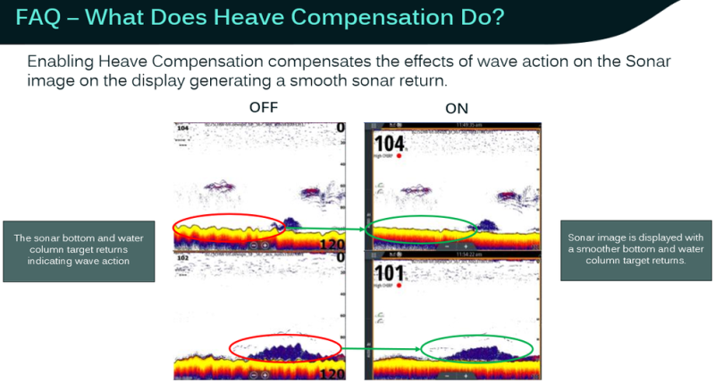 Fish with a clearer image in all conditions thanks to motion compensation. This additional feature automatically counteracts rocky bottoms, reducing noise in the sonar image and ensuring easy identification of fish and underwater structure even in rough seas or water.