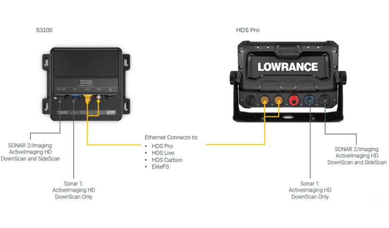 Take your fishing to the next level with the compact S3100H sonar module, packing a wealth of features into a small, yet intelligent device. The S3100H adds motion-compensated Active Imaging™ HD to Elite FS®, HDS® Pro, HDS® Live, and HDS® Carbon displays for more effective fishing. With crystal-clear underwater images and FishReveal™ view on SideScan, you'll never miss a fish.